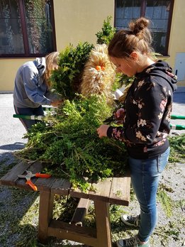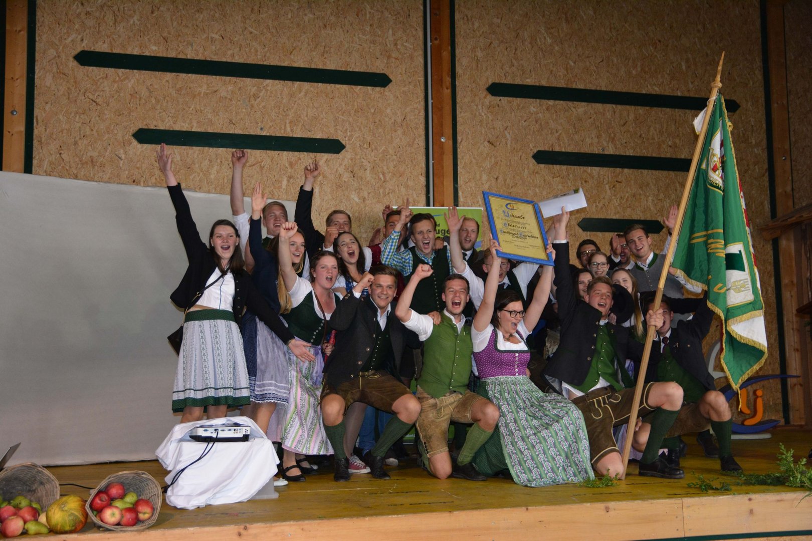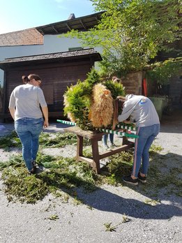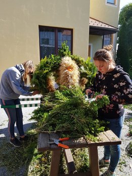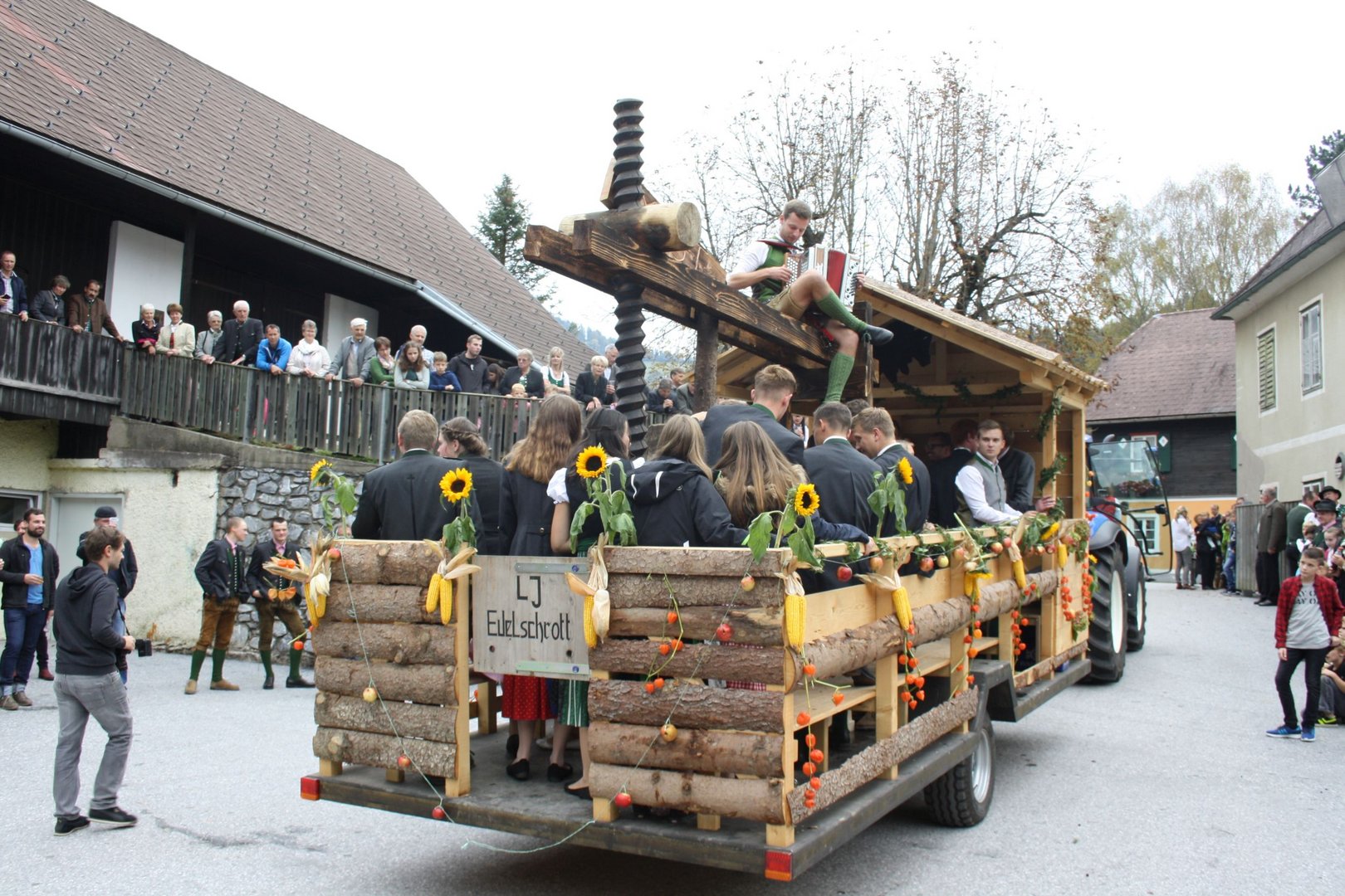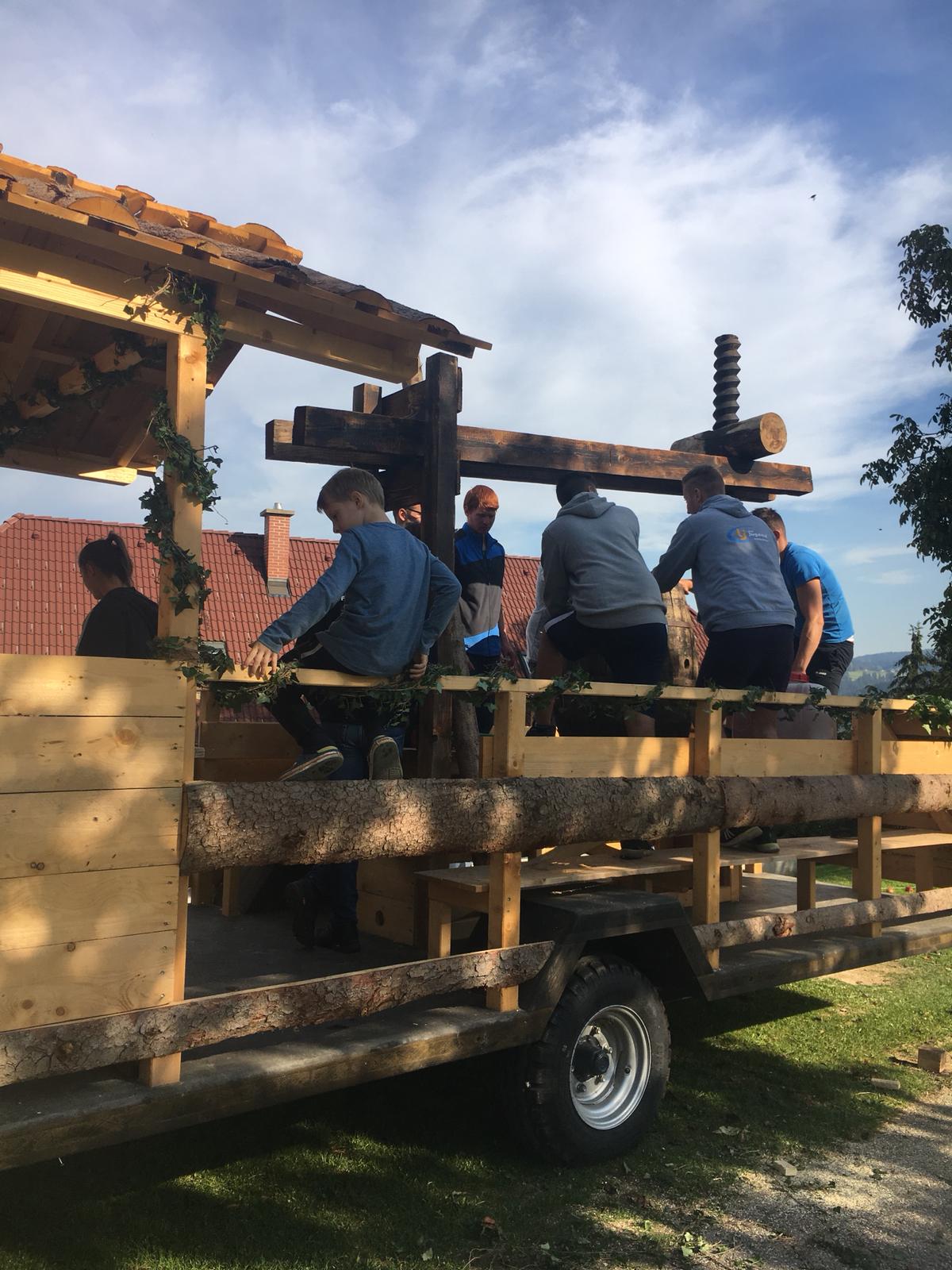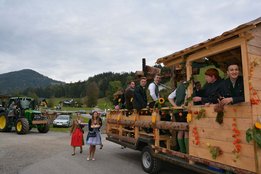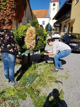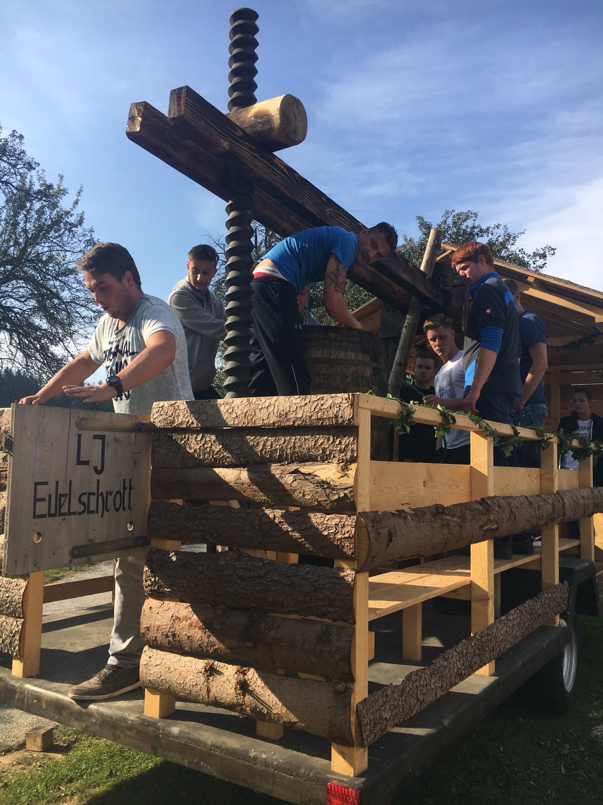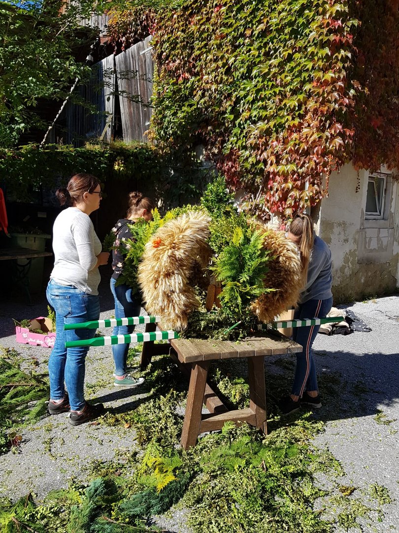 Das Wochenende vom 6. - 7. Oktober wurde heuer ganz dem Erntedank gewidmet. Am Samstag wurde bereits in der Früh begonnen, die Erntekrone für das Erntedankfest in Edelschrott wieder schön zu binden und zu schmücken. Nebenbei wurde schon der Entewagen zum Thema "Most" für das Bezirkserntedankfest in Geistthal von den Burschen auf Vordermann gabracht und anschließend von den Mädels dekoriert. Am Sonntag wurde dann die selbst gebundene Erntekrone von der Jugend in die Kirche getragen. Nach dem Gottesdienst machten sich alle Mitglieder auf den Weg nach Geistthal um dort das große Bezirkserntedankfest zu feiern. Natürlich schenkten wir auch selbstgemachten Most beim Umzug aus. Auch in diesem Jahr sind wieder Mitglieder aus unseren Reihen geehrt worden. Über das silberen LAZ darf sich heuer unser Mitglied sowie Bezirksobmann Michael Gugl freuen. Ganz besonders freut es uns, dass unser ehemaliger Obmann Florian Pöschl das Ehrenwertvoll Abzeichen für seine gesamte ehrenamtliche Tätigkeit überreicht bekommen hat. Grund genug hatten aber all unsere Mitglieder zu feiern. Die Bezirksfahne, welche an die aktivste Ortsgruppe des letzten Jahres vergeben wird, ging an uns, die LJ EDELSCHROTT. Wir sind natürlich besonders glücklich und stolz.