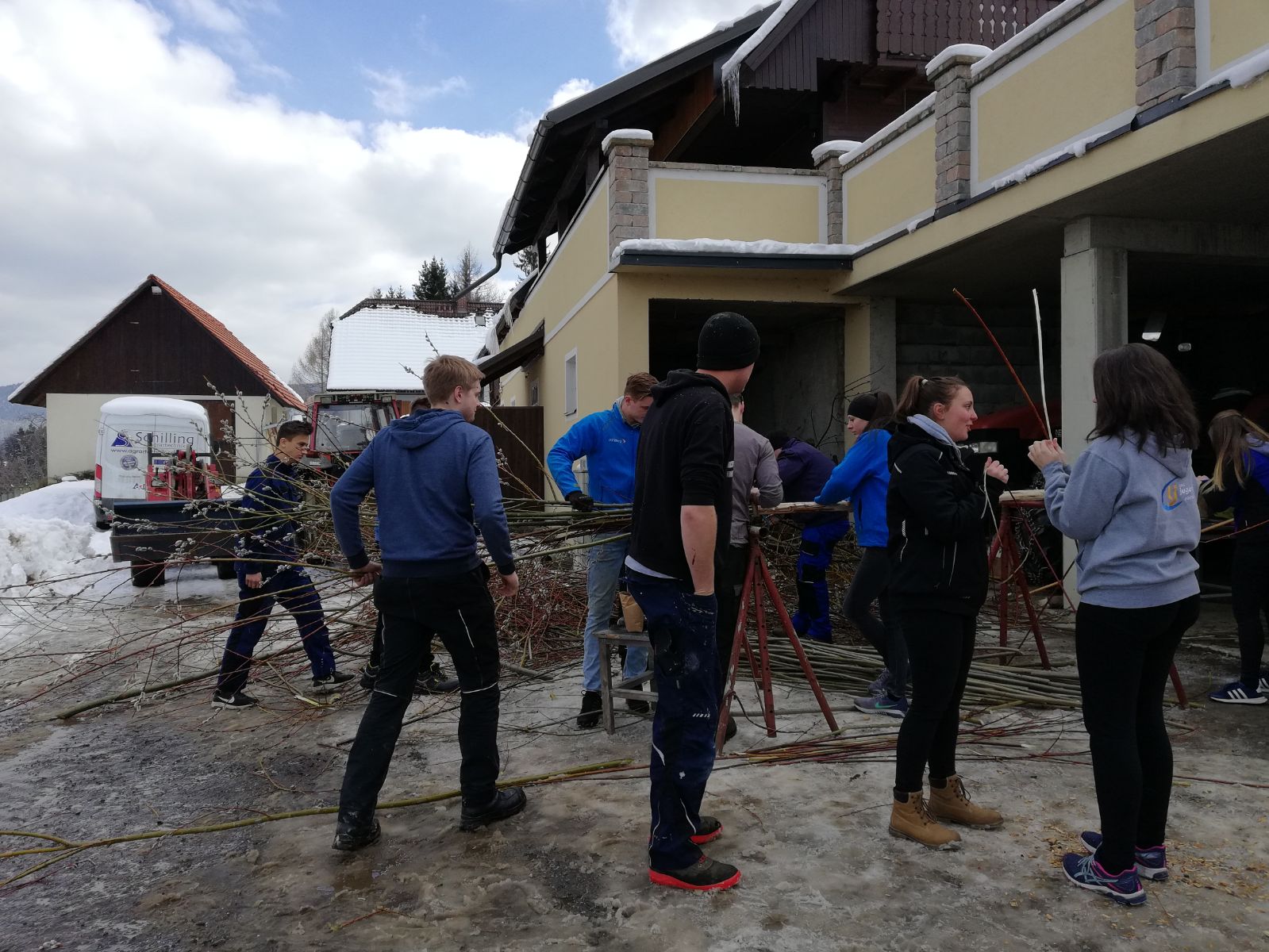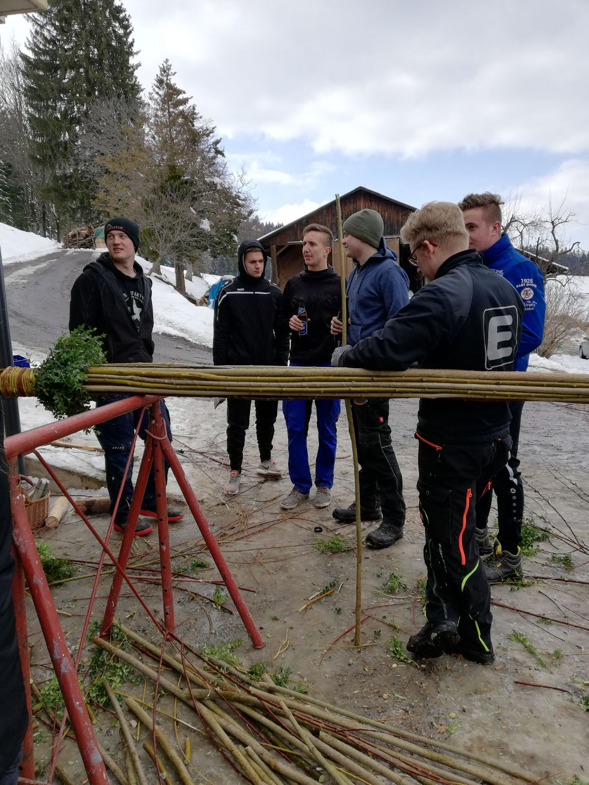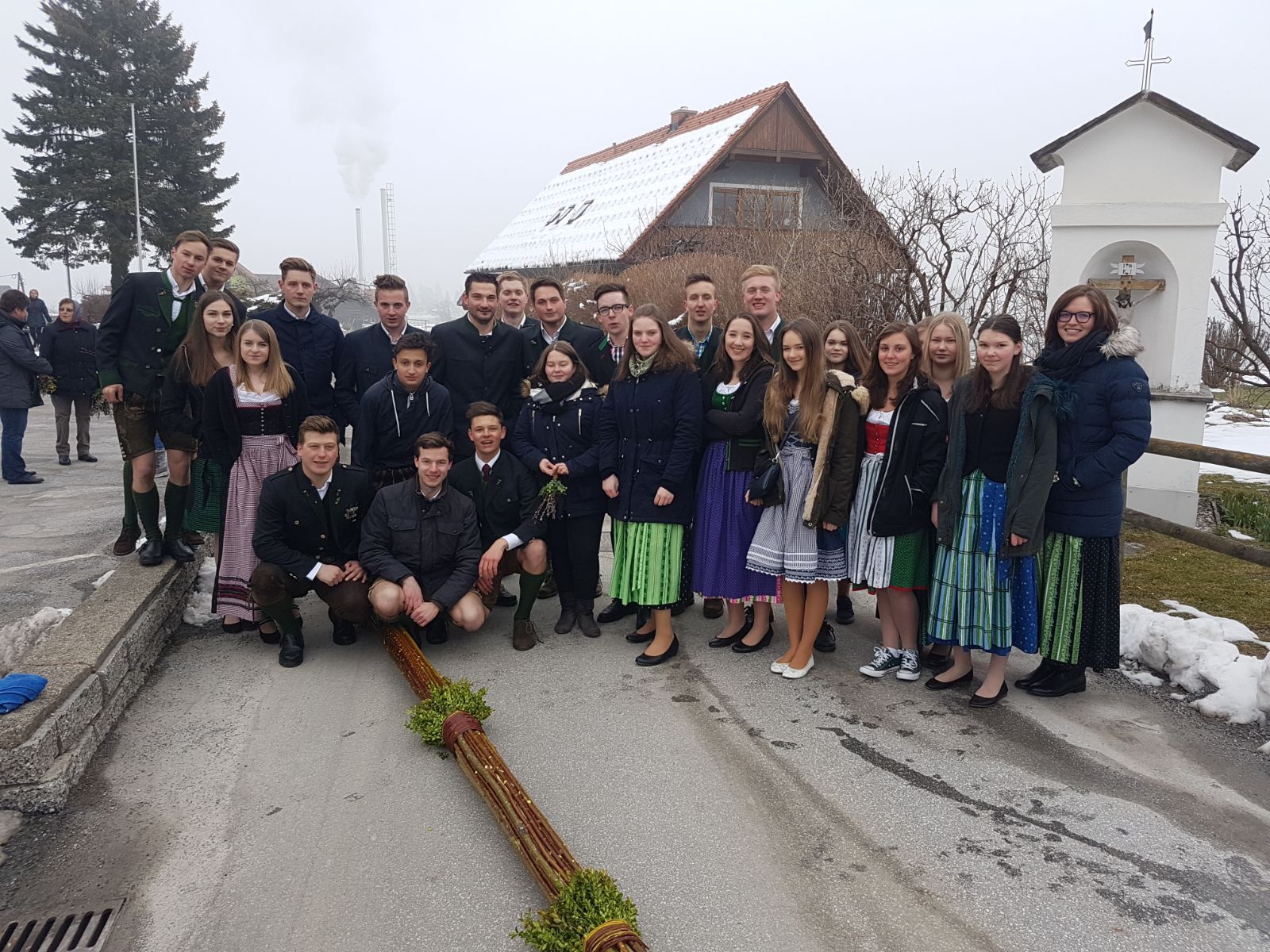 Am Samstag trafen sich über 30 Mitglieder bei unserem Obmann Stv. Maxi um gemeinsam wieder einen großen und schönen Palmbuschen zu binden. Unsere Burschen kümmerten sich um den Halt des Palmbuschen und die Mädels waren für den "Feinschliff" zuständig! Nach einem langen Nachmittag mit viel Handwerklichen Geschick wurde der Palmbuschen bereits ein Stück in Richtung Dorf getragen. Am Sonntag ging es für unsere Burschen bereits früh los, denn sie mussten den Palmbuschen zur Palmweihe tragen. Ein ereignisreiches Wochenende, an dem wir uns ganz der Tradition widmeten.