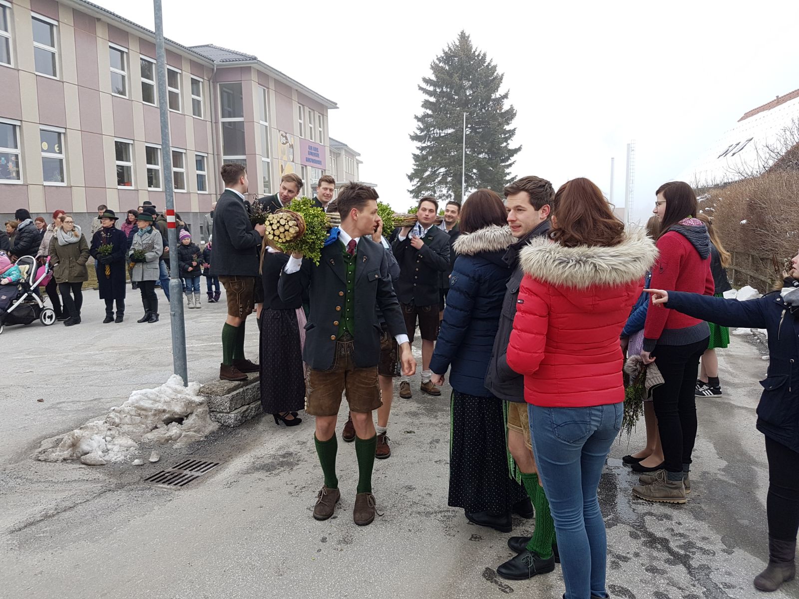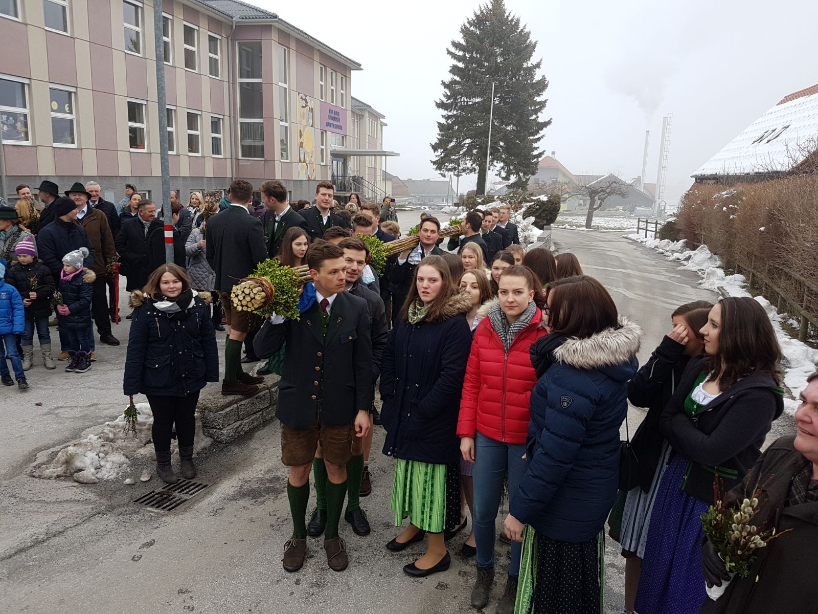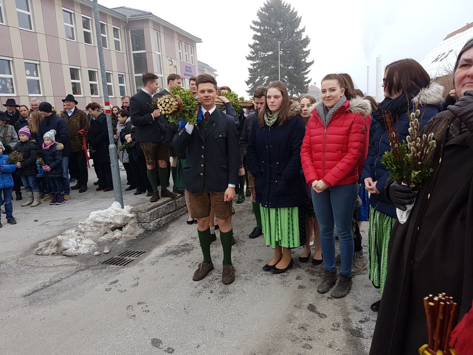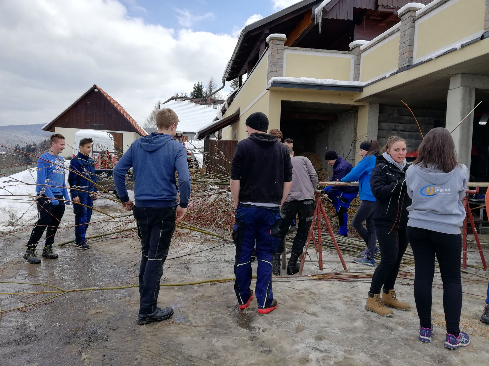 Am Samstag trafen sich über 30 Mitglieder bei unserem Obmann Stv. Maxi um gemeinsam wieder einen großen und schönen Palmbuschen zu binden. Unsere Burschen kümmerten sich um den Halt des Palmbuschen und die Mädels waren für den "Feinschliff" zuständig! Nach einem langen Nachmittag mit viel Handwerklichen Geschick wurde der Palmbuschen bereits ein Stück in Richtung Dorf getragen. Am Sonntag ging es für unsere Burschen bereits früh los, denn sie mussten den Palmbuschen zur Palmweihe tragen. Ein ereignisreiches Wochenende, an dem wir uns ganz der Tradition widmeten.